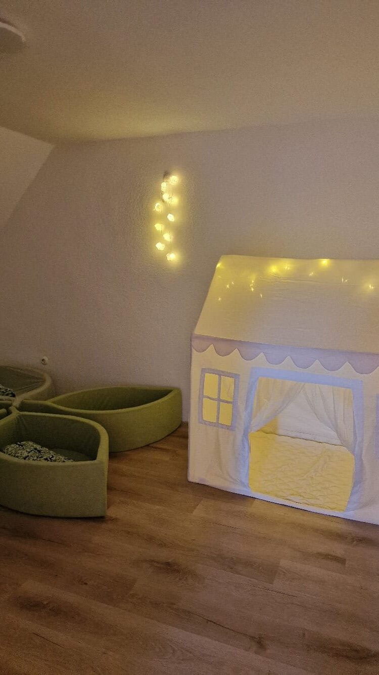 Schön, dass Sie hier sind! Mein Name ist Alina Bergen, und ich bin Vertretungs-Tagesmutter in Swisttal. Ich freue mich, Ihnen meine liebevoll geführte Kindertagespflege Glückslämmchen in Swisttal vorzustellen. Auf unserem familiennahen Hof mit großzügigem Garten, vielen Tieren und einer kindgerecht gestalteten Wohnung biete ich Kindern ein liebevolles Umfeld voller Geborgenheit, Spiel, Natur und individueller Förderung.